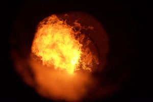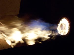 To further improve combustion completeness and operational flexibility, the team developed multi-fuel modulation concepts capable of firing multiple fuels individually or in combination, with an optional oxygen-assist feature. This work contributed to the broader system architecture and the second patent pathway, enabling power producers to choose lower-cost fuels based on market pricing. At flame temperatures above 2,175F. total oxidation thermal destruction of “Toxins” was achieved, as to market this to the Waste-to-Energy power plants. Picture left; Modulating; Auto-Waste oils with No.2 oil keeping 0ppm of CO.